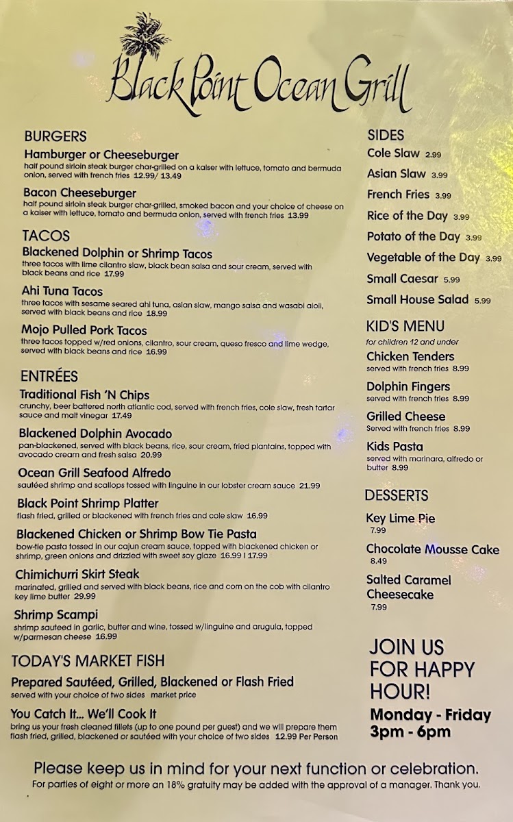 For inquiries or to make a reservation, feel free to call them at +1 305-258-3918. Come discover your new favorite spot at Black Point Ocean Grill!